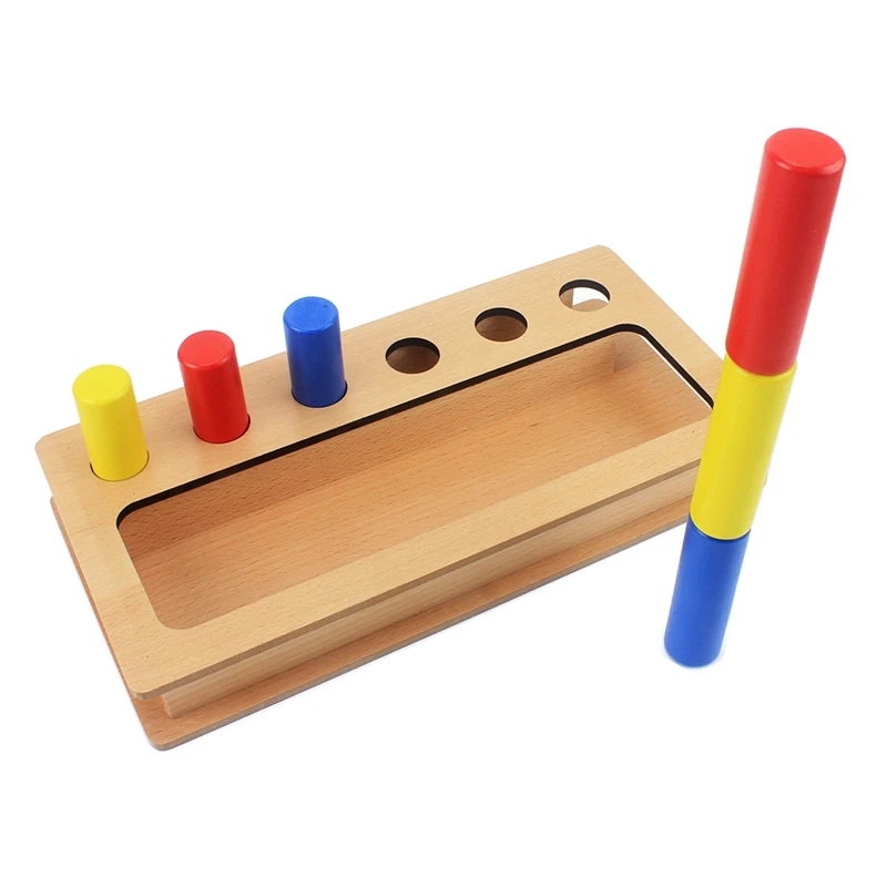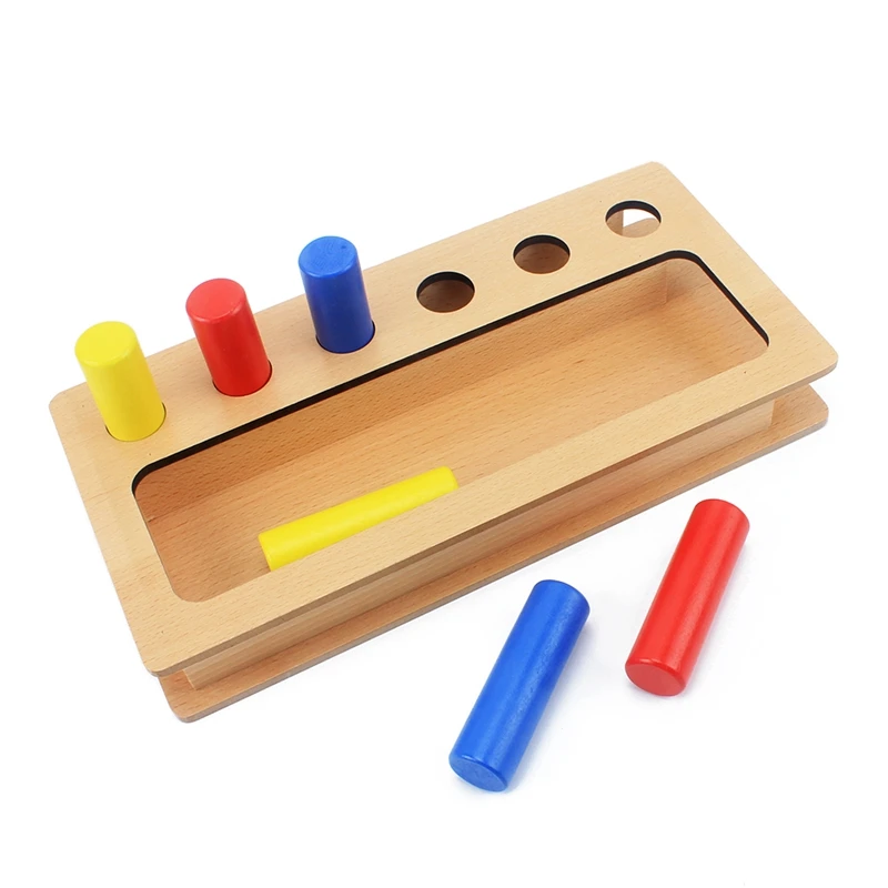 Montessori Materials Kids Toy Baby Wood Tri-color Cylinder Insert Box Learning Educational Preschoo