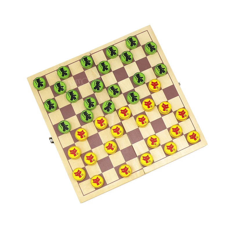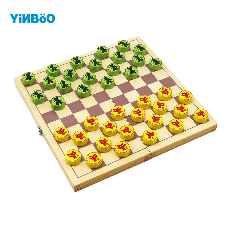 International Checkers Chess GameWooden Material Lattice Green/Yellow Chessman Cute Chess For Child
