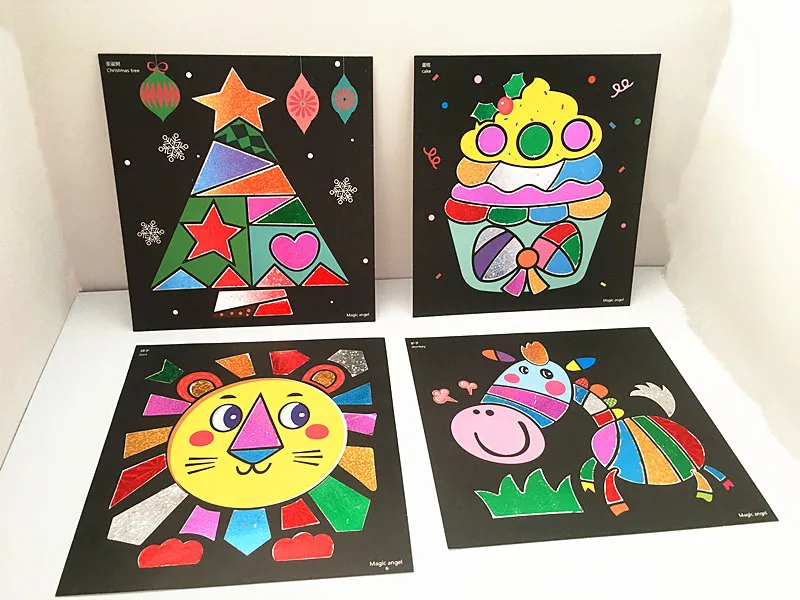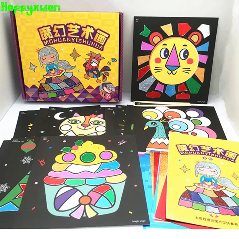 TOP Happyxuan 12pcs Kids DIY Magic Christmas Arts and Crafts Sticker Kit Handmade Material Kindergarten