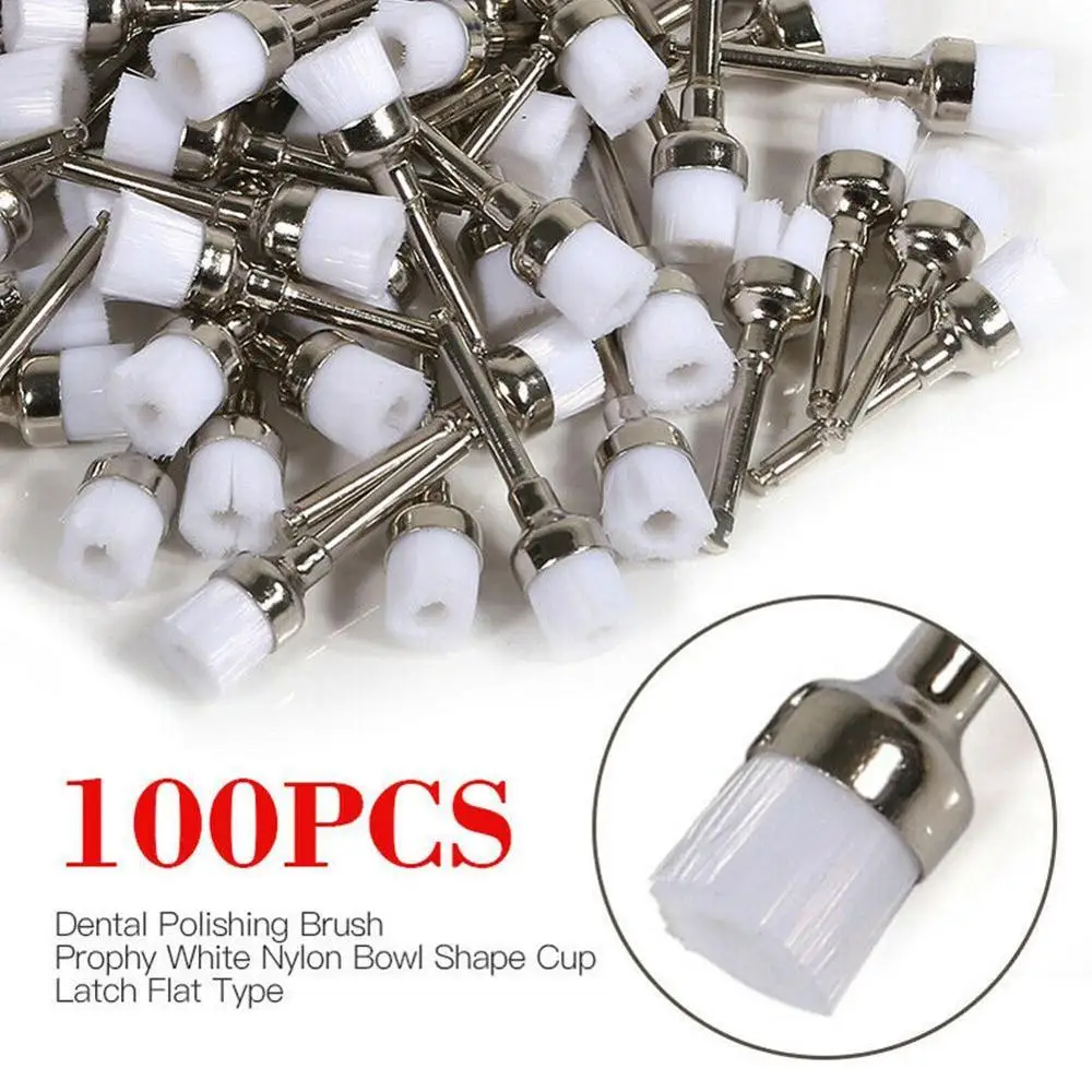 100pcs Dental Material Shape Brush Dental Prophy Brush New Nylon Polishing Brush Dental Use