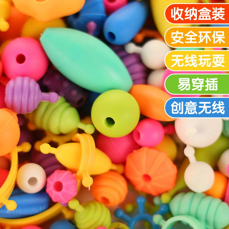 Children Pop String of Beads Handmade DIY Material Box Baby Bracelets Cordless Fight Inserted Littl
